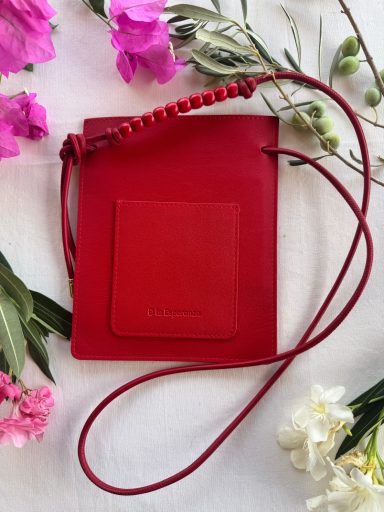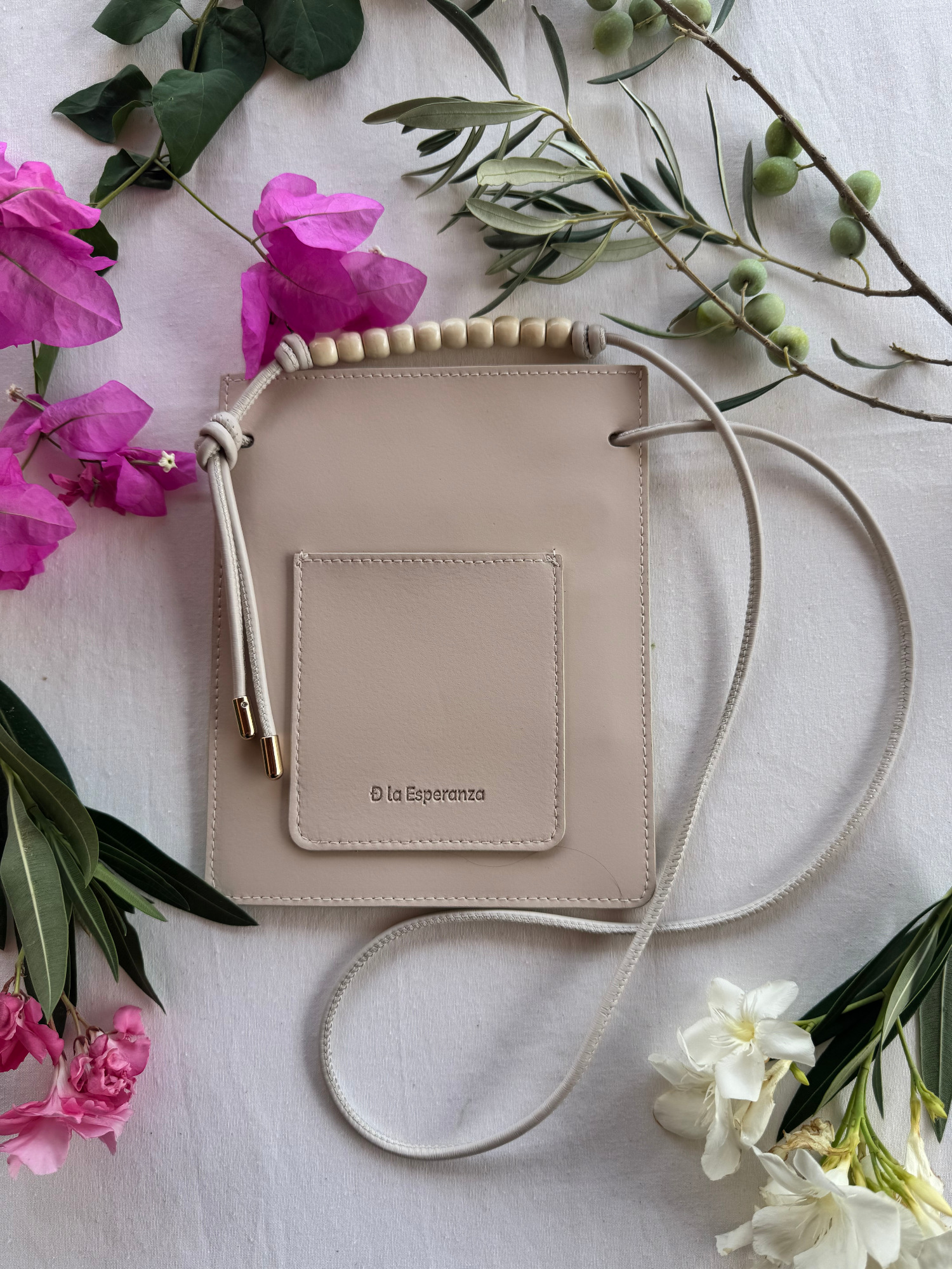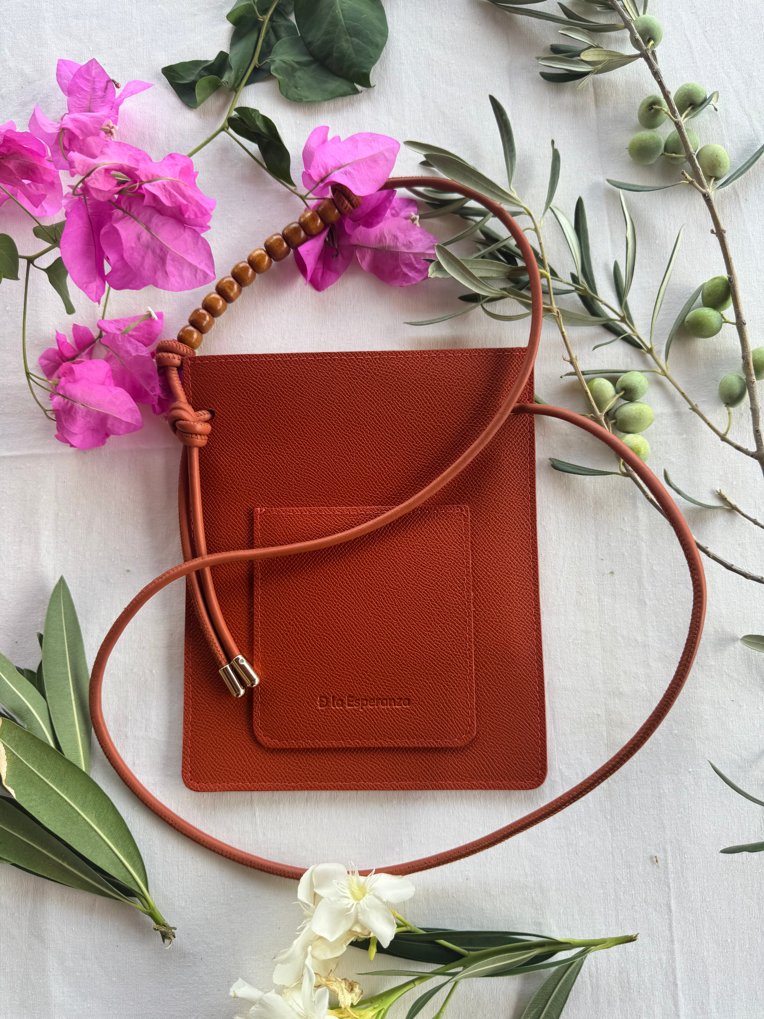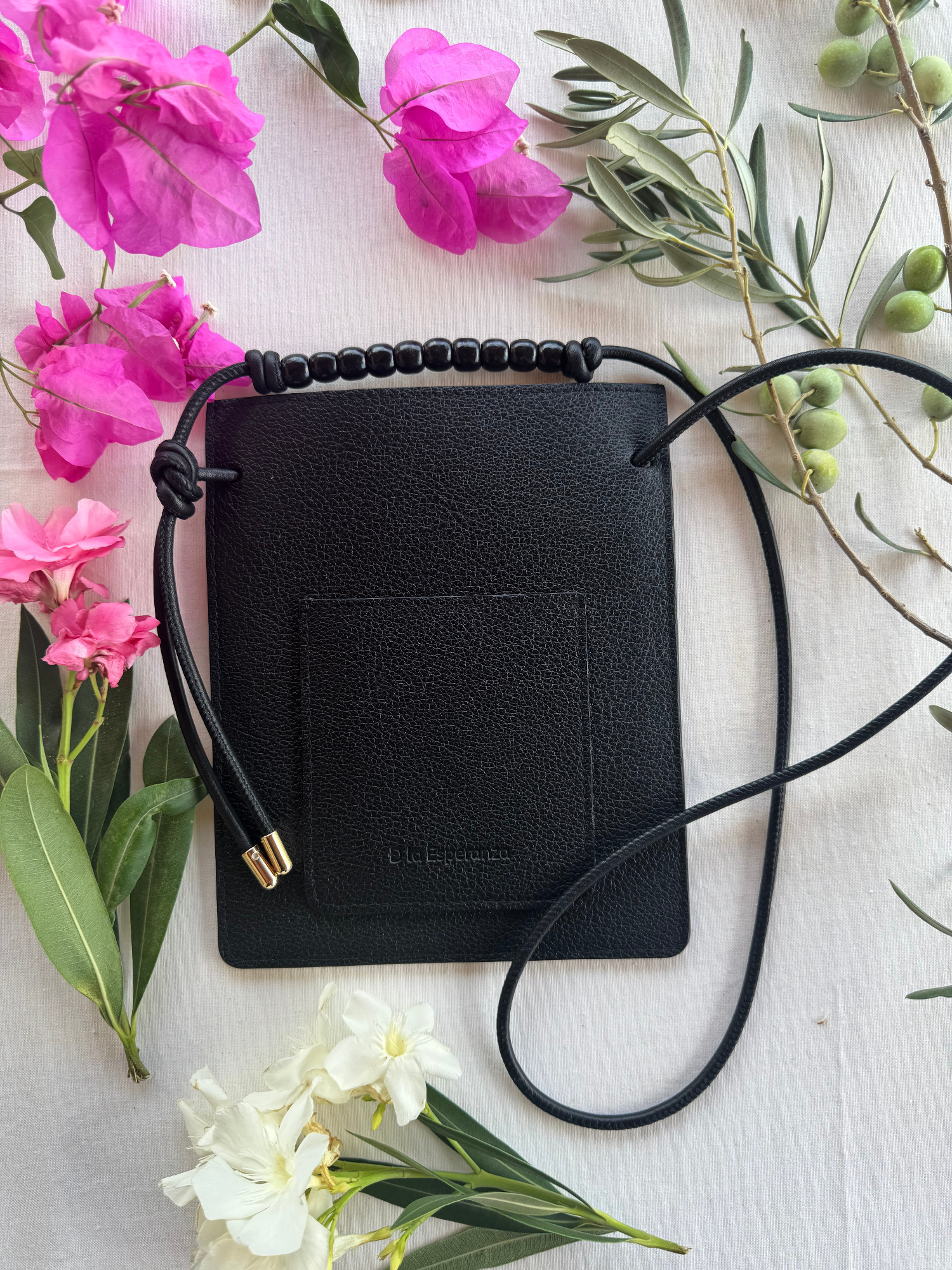 El bolso móvil Carmelita nace de una inspiración profunda en el escapulario de la Virgen del Carmen, un símbolo que, desde hace siglos, acompaña a los fieles como signo de amor, guía y protección maternal. Cada detalle de este bolso está pensado para honrar esa tradición: su asa incluye diez cuentas Avemarías, que evocan la oración diaria y convierten al bolso en un compañero espiritual en la vida cotidiana.