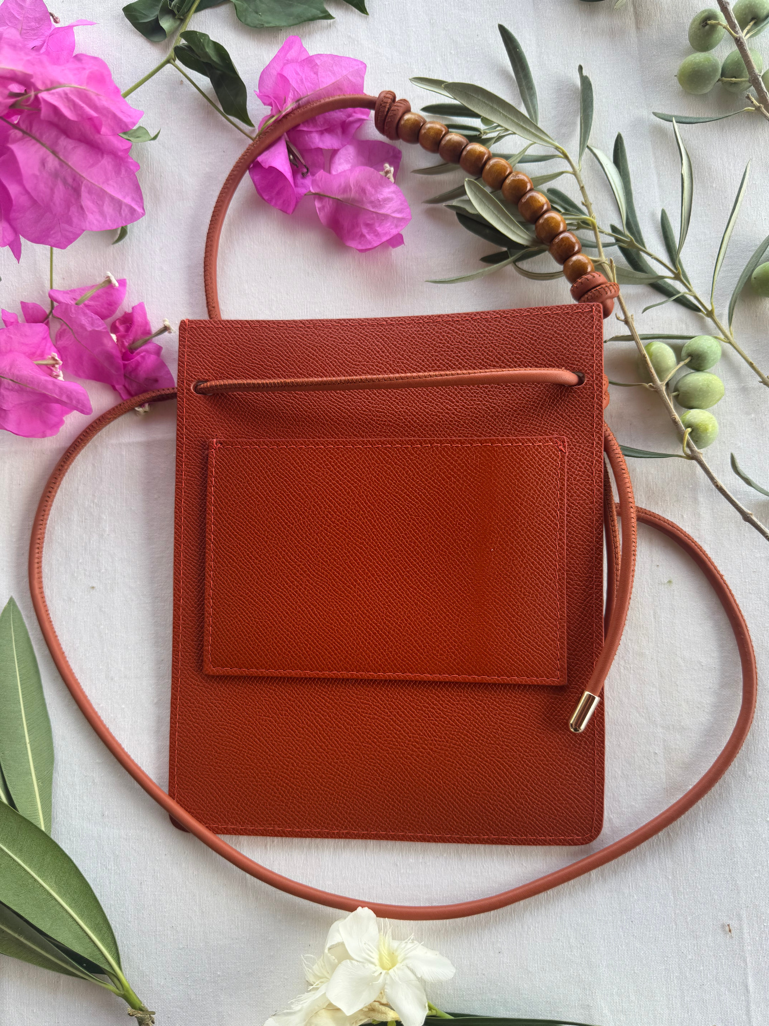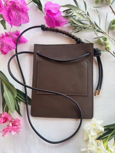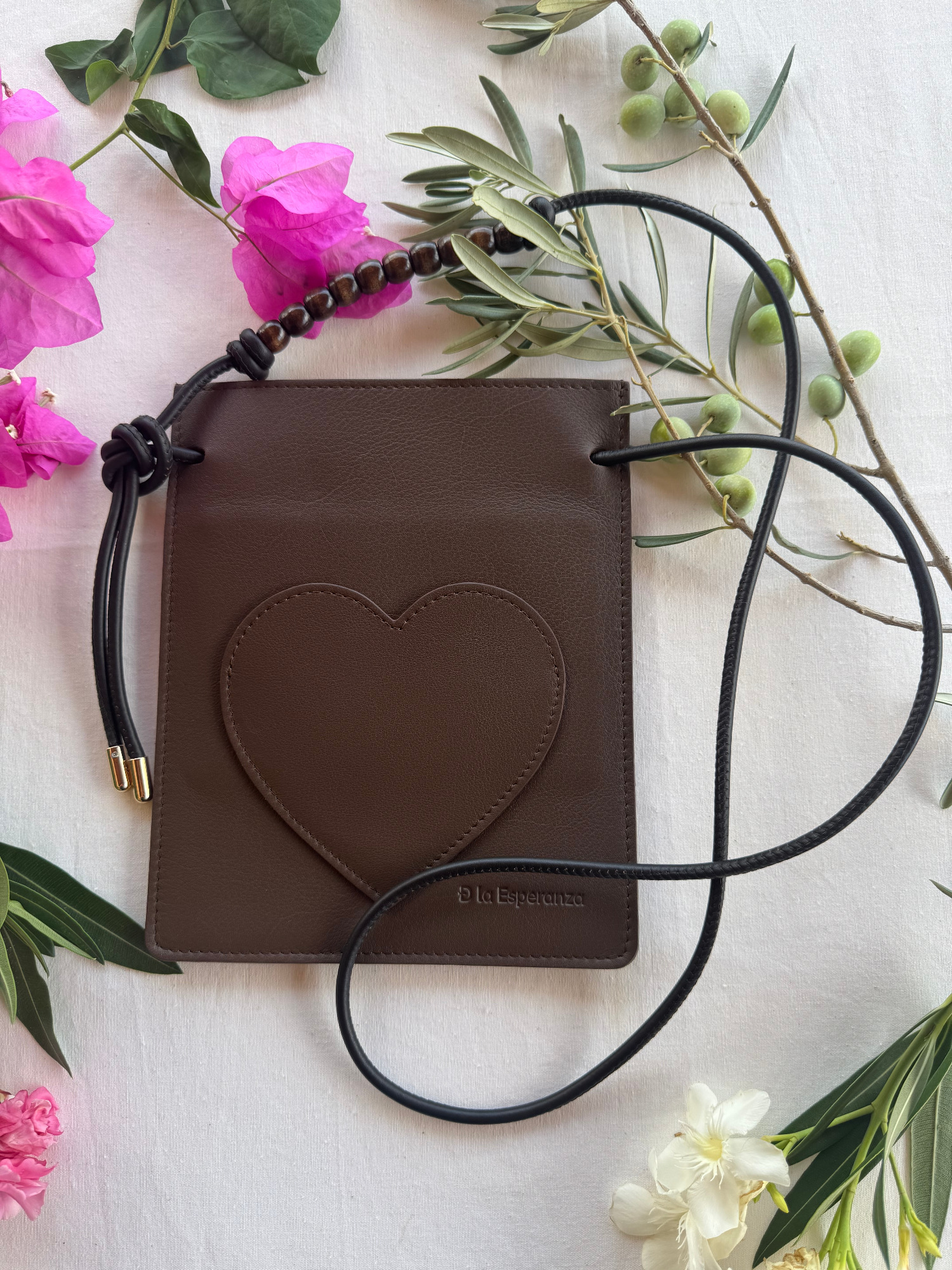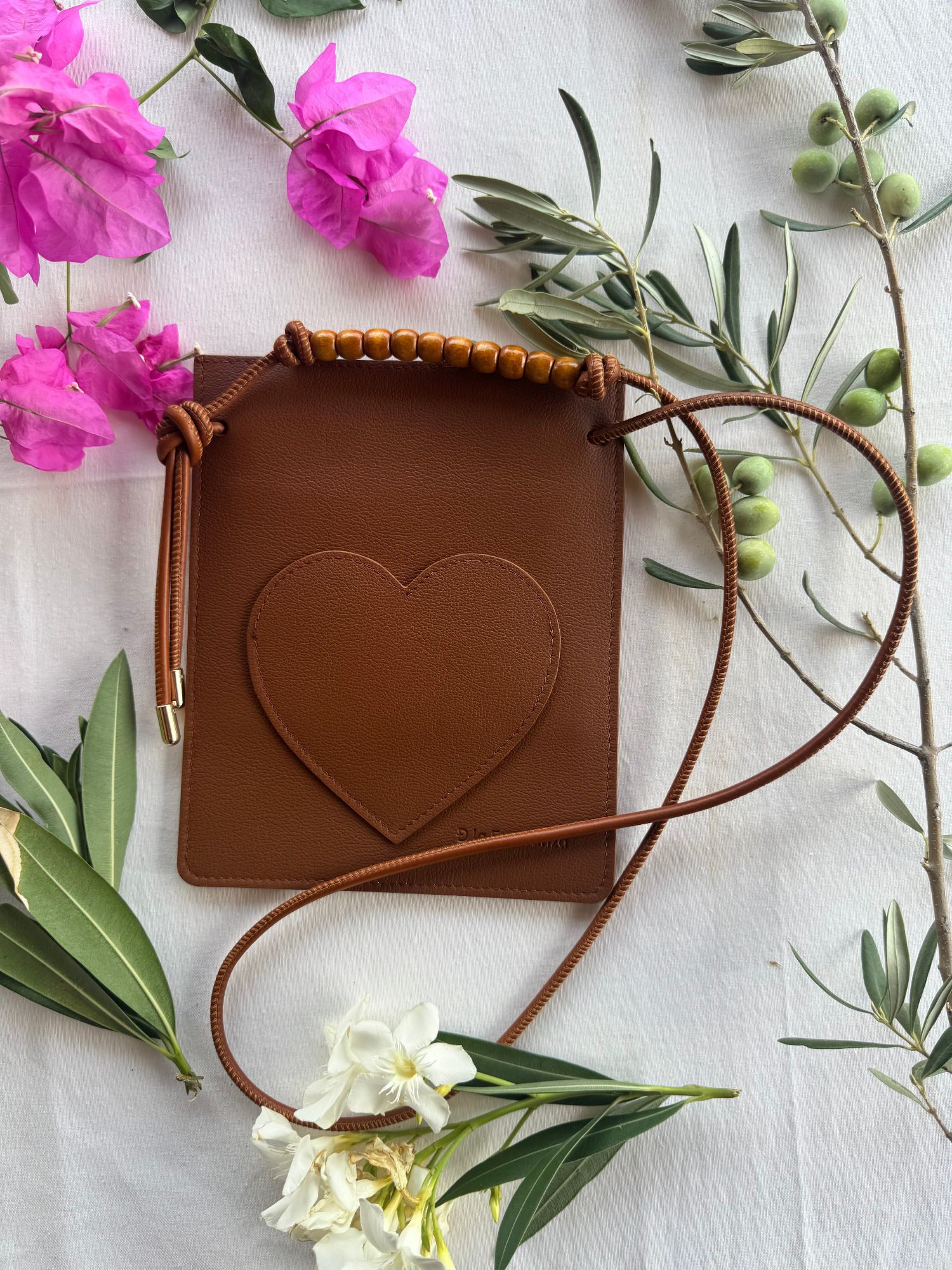 El bolso móvil Carmelita nace de una inspiración profunda en el escapulario de la Virgen del Carmen, un símbolo que, desde hace siglos, acompaña a los fieles como signo de amor, guía y protección maternal. Cada detalle de este bolso está pensado para honrar esa tradición: su asa incluye diez cuentas Avemarías, que evocan la oración diaria y convierten al bolso en un compañero espiritual en la vida cotidiana.