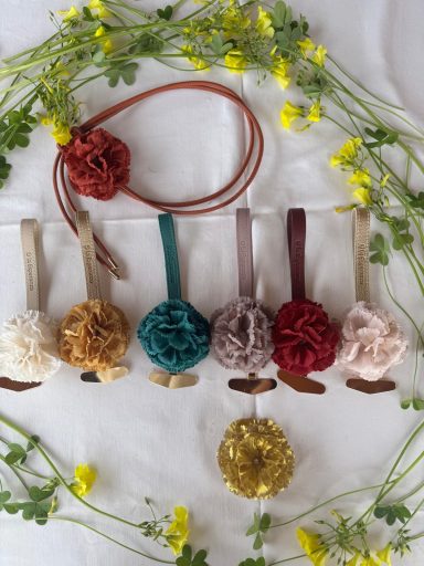 Cada flor se realiza a partir de flores de tela seleccionadas, que se transforman para poder llevarlas puestas como complemento.