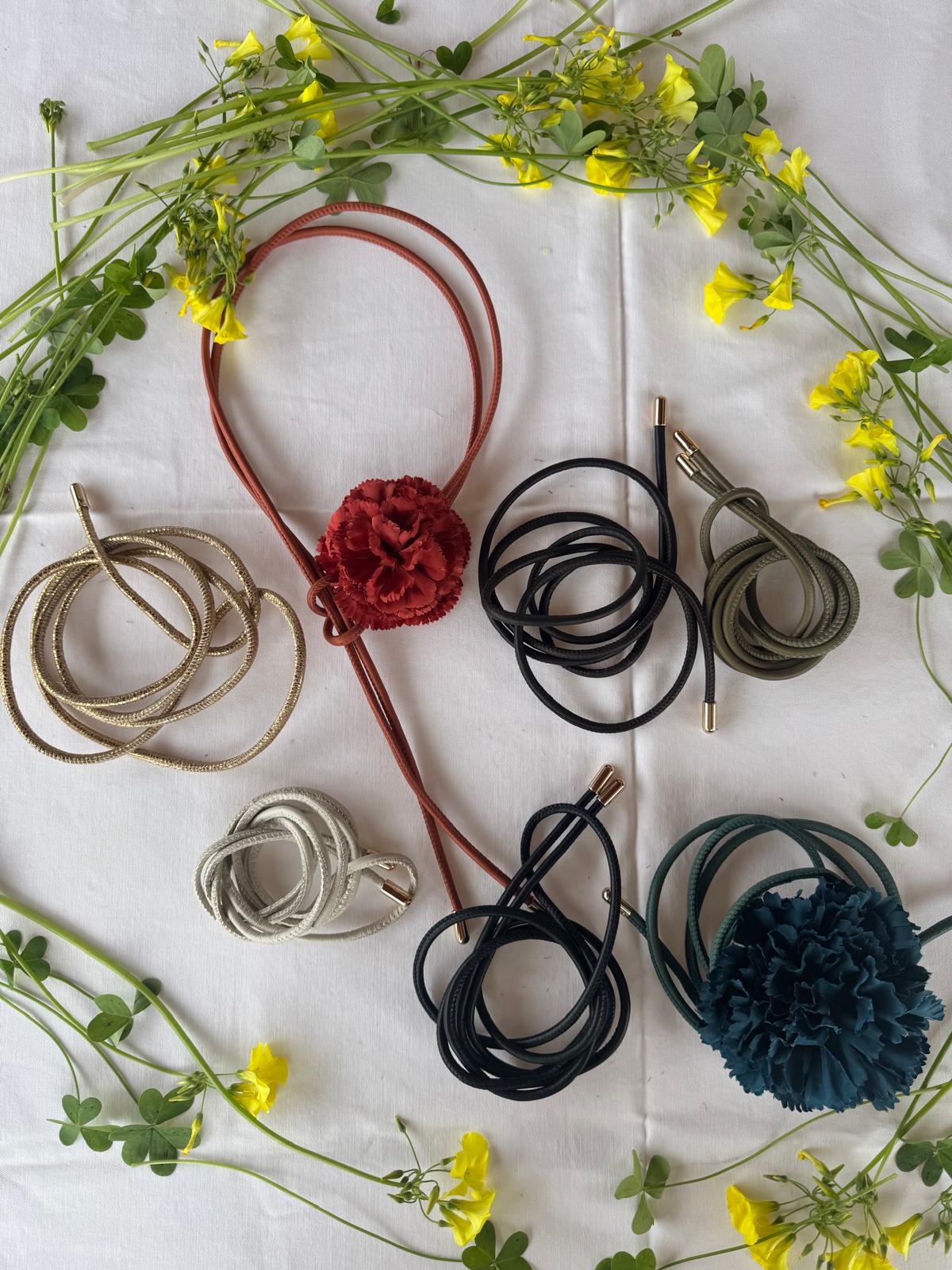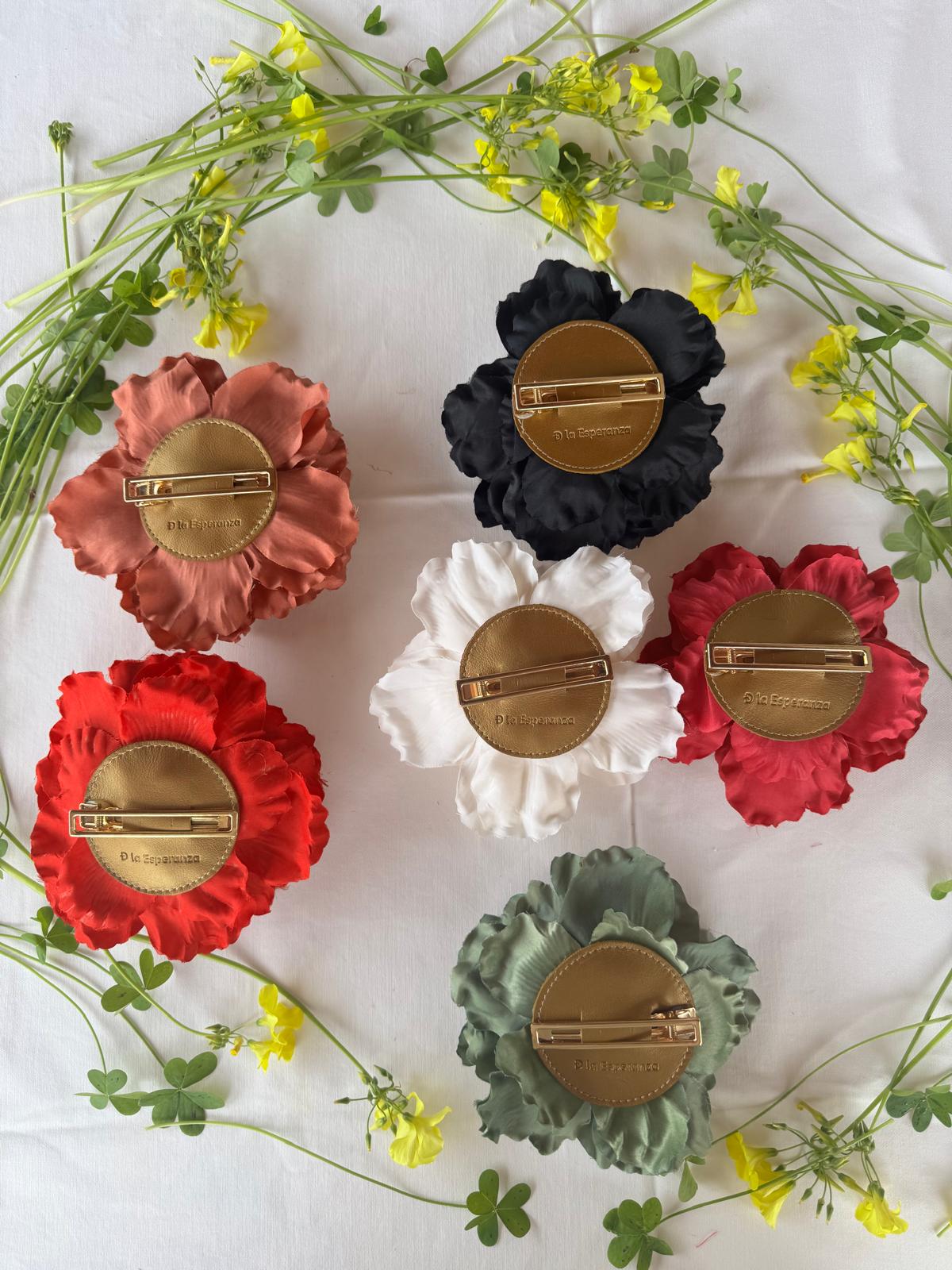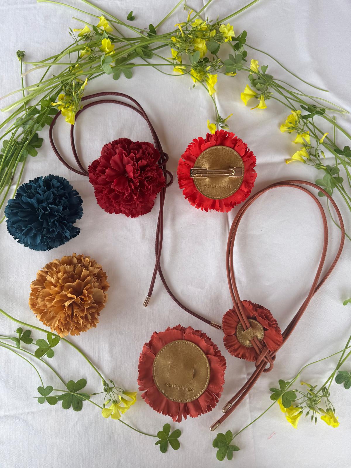 Cada flor se realiza a partir de flores de tela seleccionadas, que se transforman para poder llevarlas puestas como complemento.