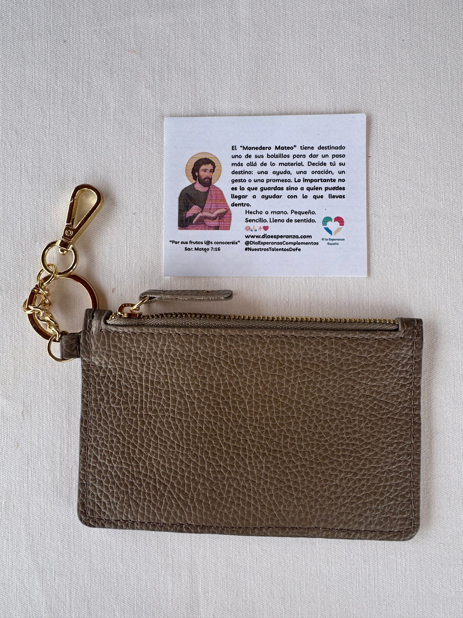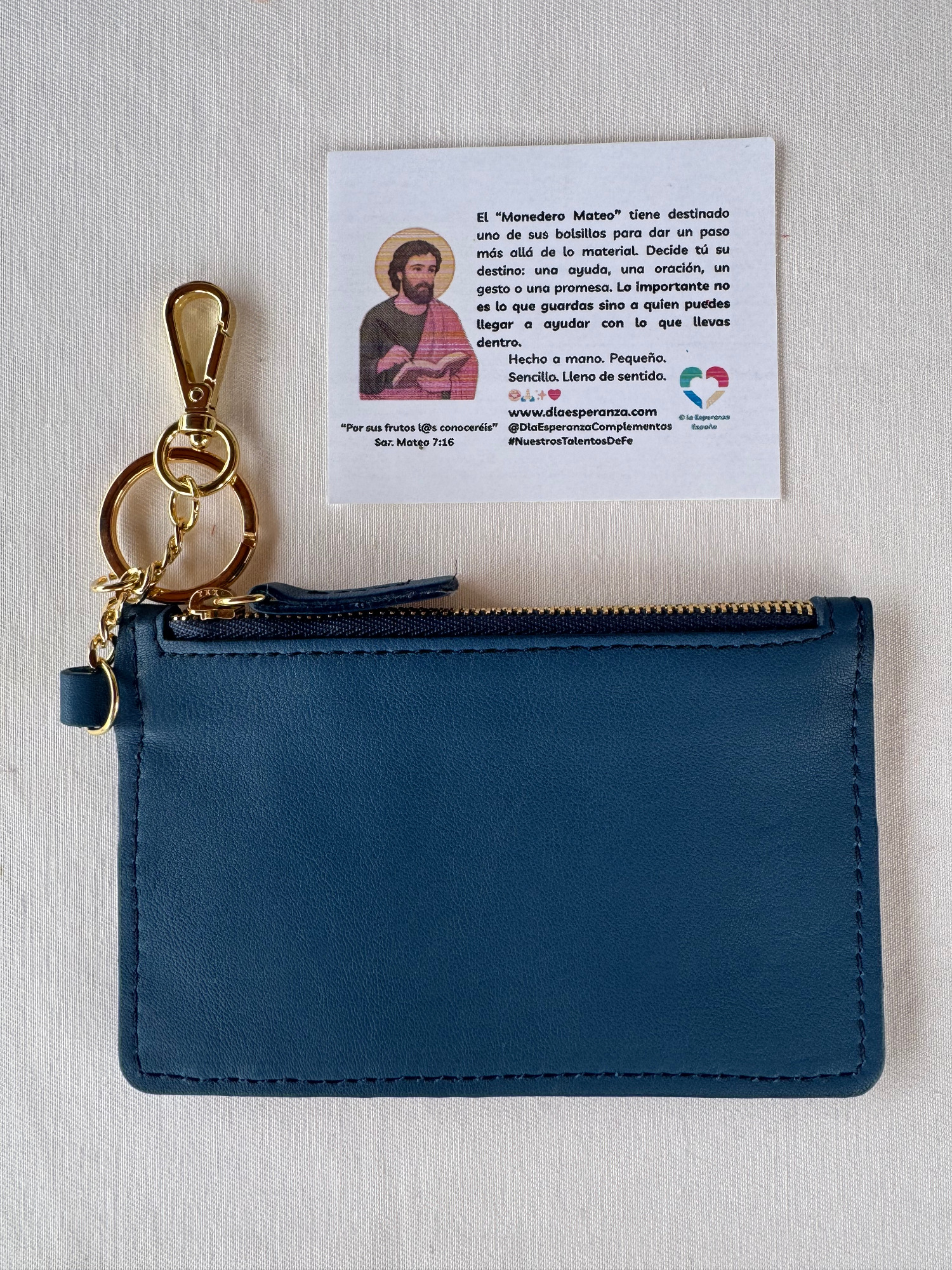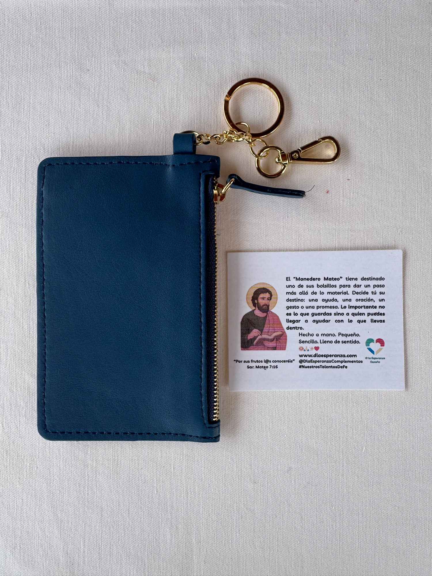 El monedero Mateo lleva el nombre de San Mateo, el apóstol que dejó las monedas para seguir la llamada de la fe.