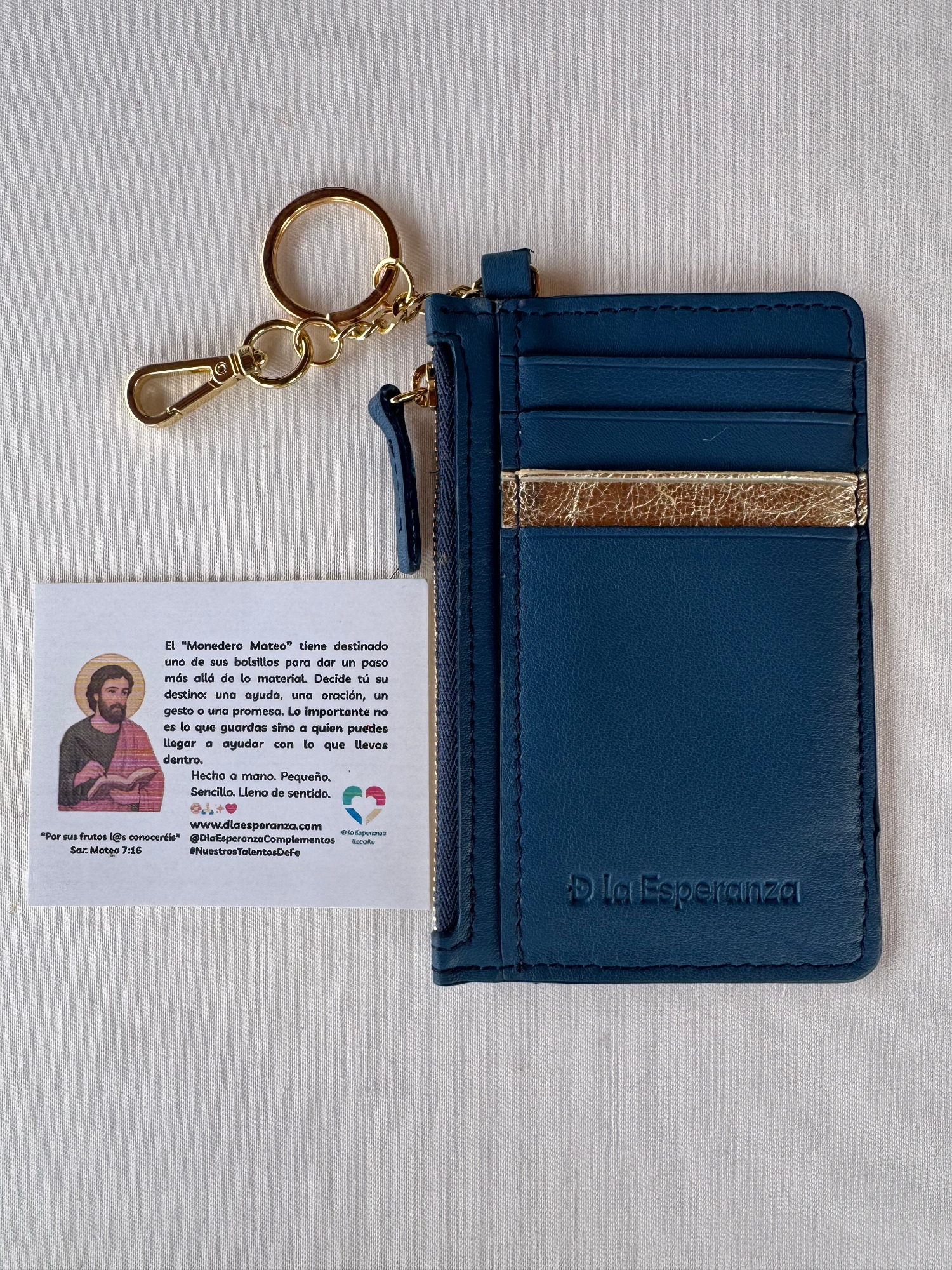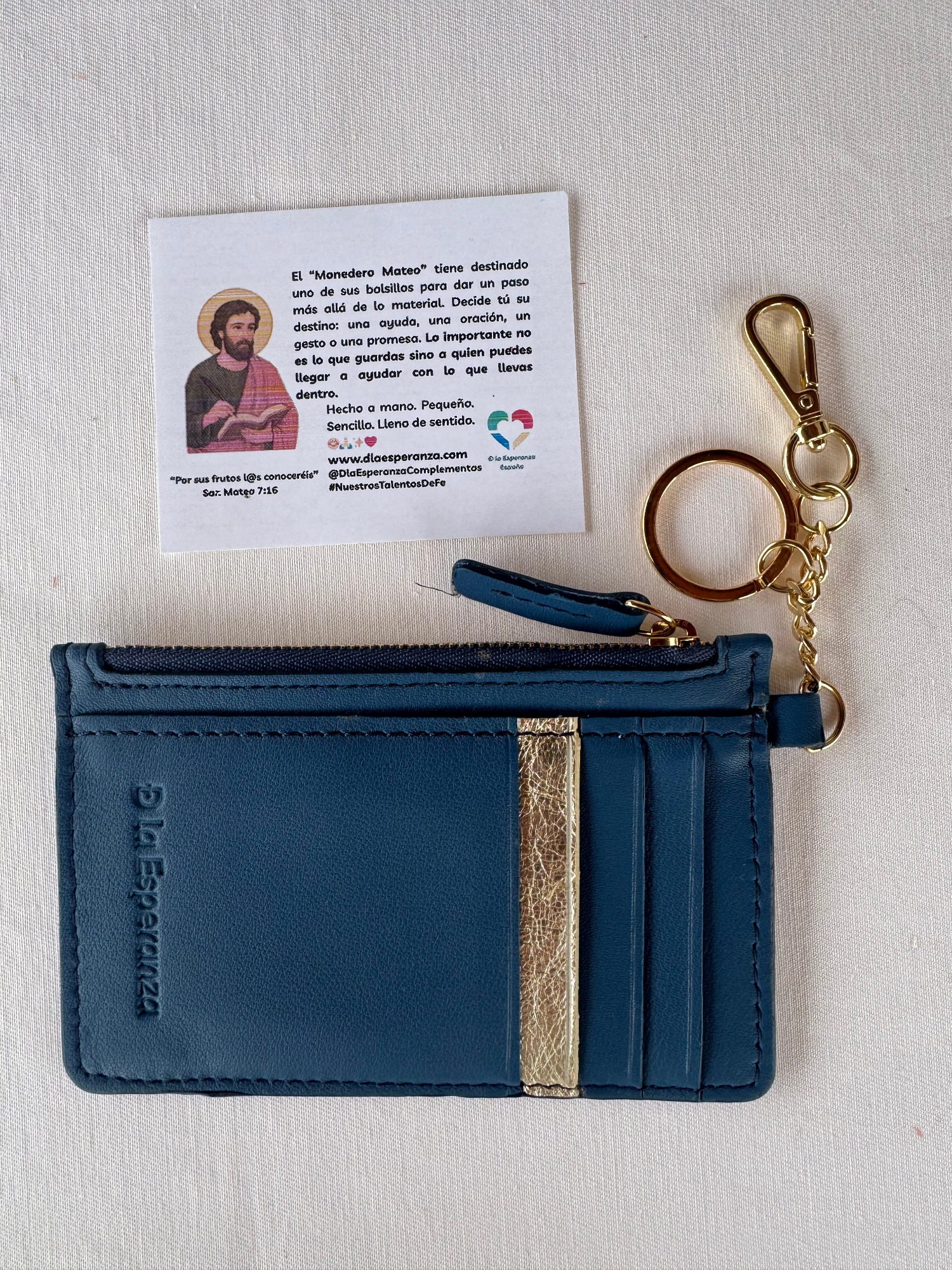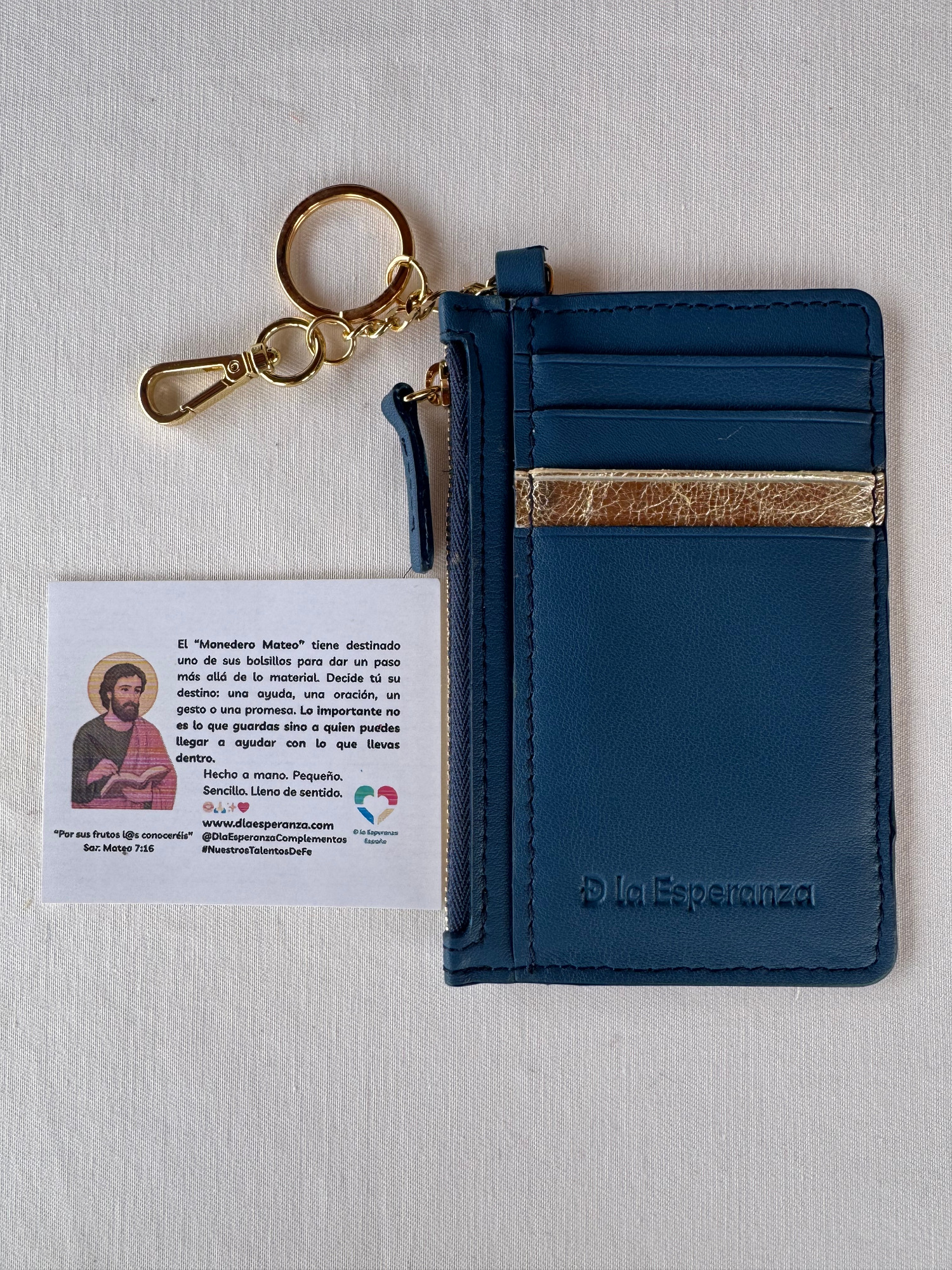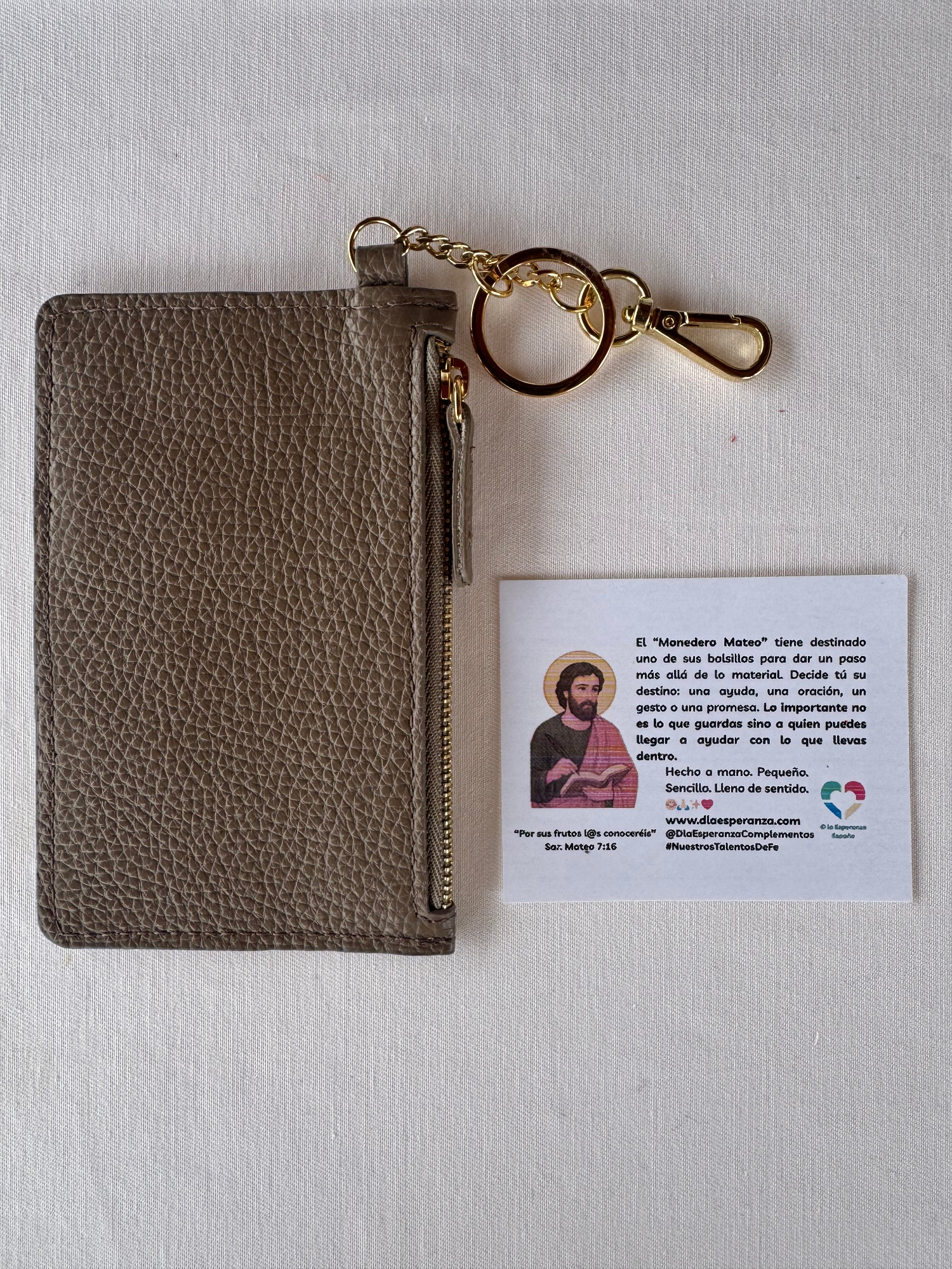 El monedero Mateo lleva el nombre de San Mateo, el apóstol que dejó las monedas para seguir la llamada de la fe.