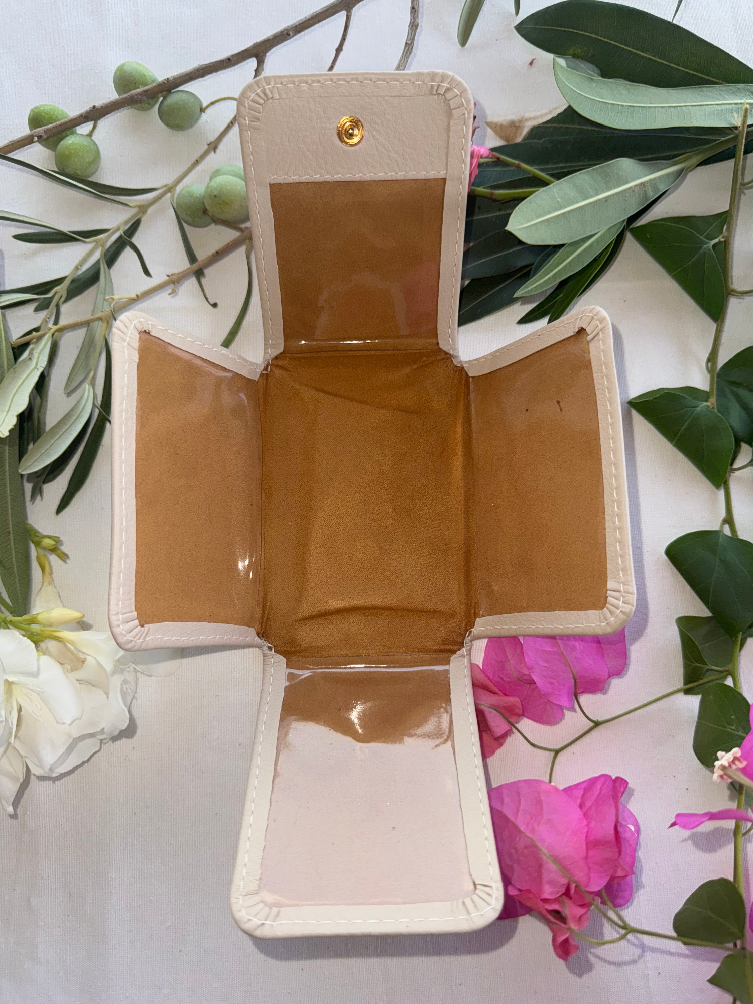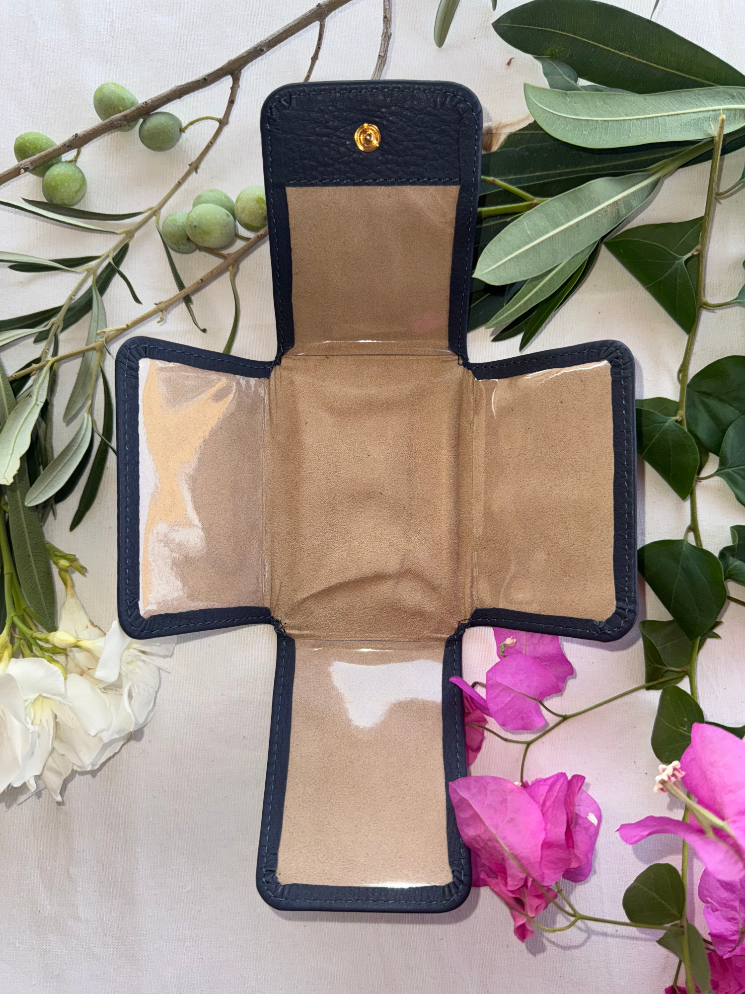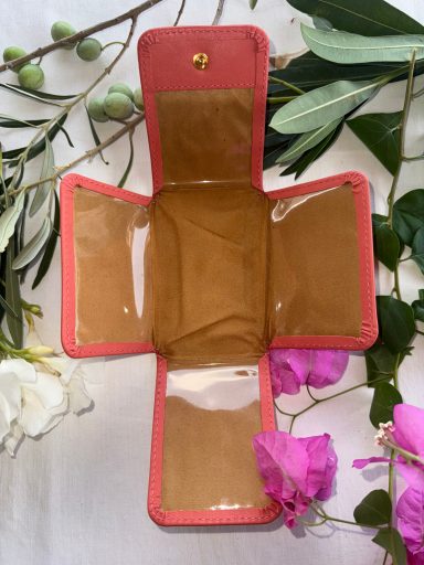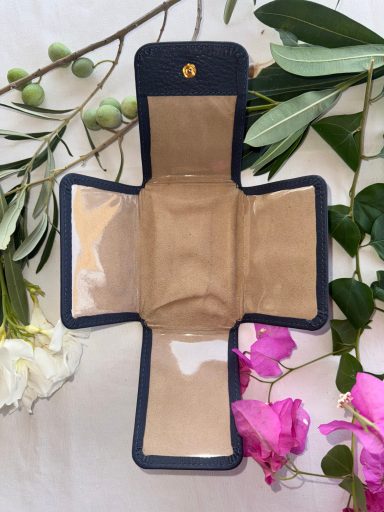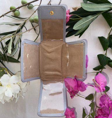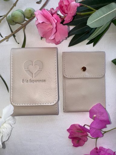 Pequeño y práctico, este oratorio te permite colocar estampas y fotografías tamaño DNI y, en el centro, colgar o coser cruces y medallas. En la parte trasera, incluye un portarosario que puede separarse si lo deseas. Cada detalle está pensado para acompañarte en momentos en los que vivir la fe con devoción, ya sea en casa, en la oficina o de viaje.