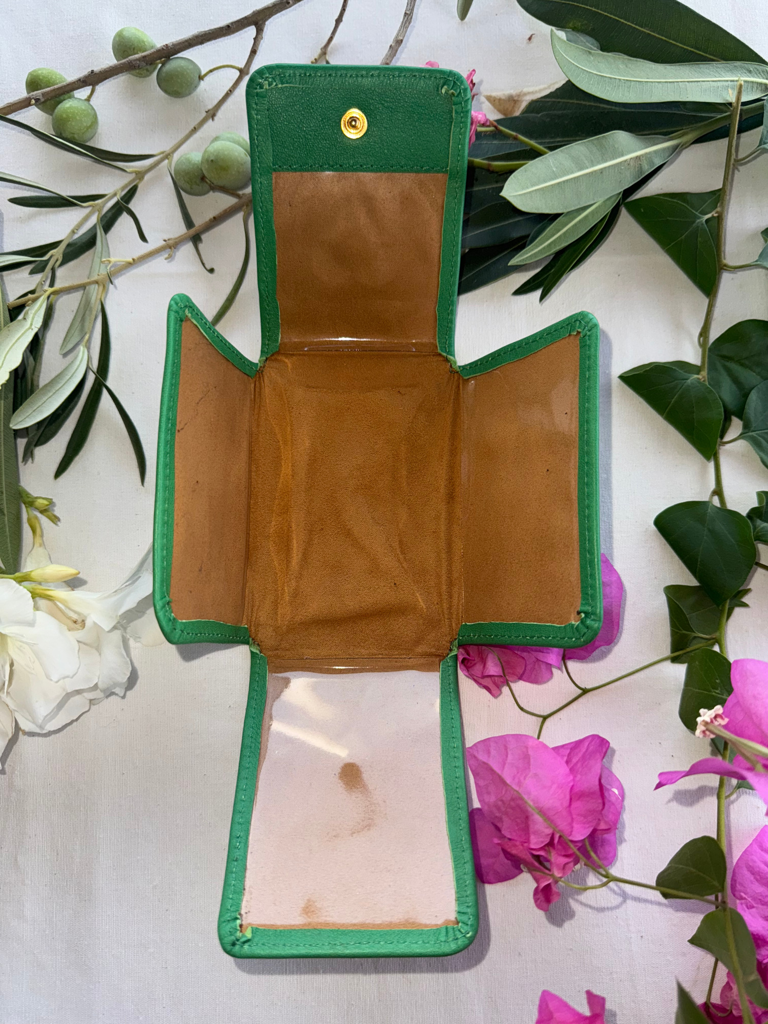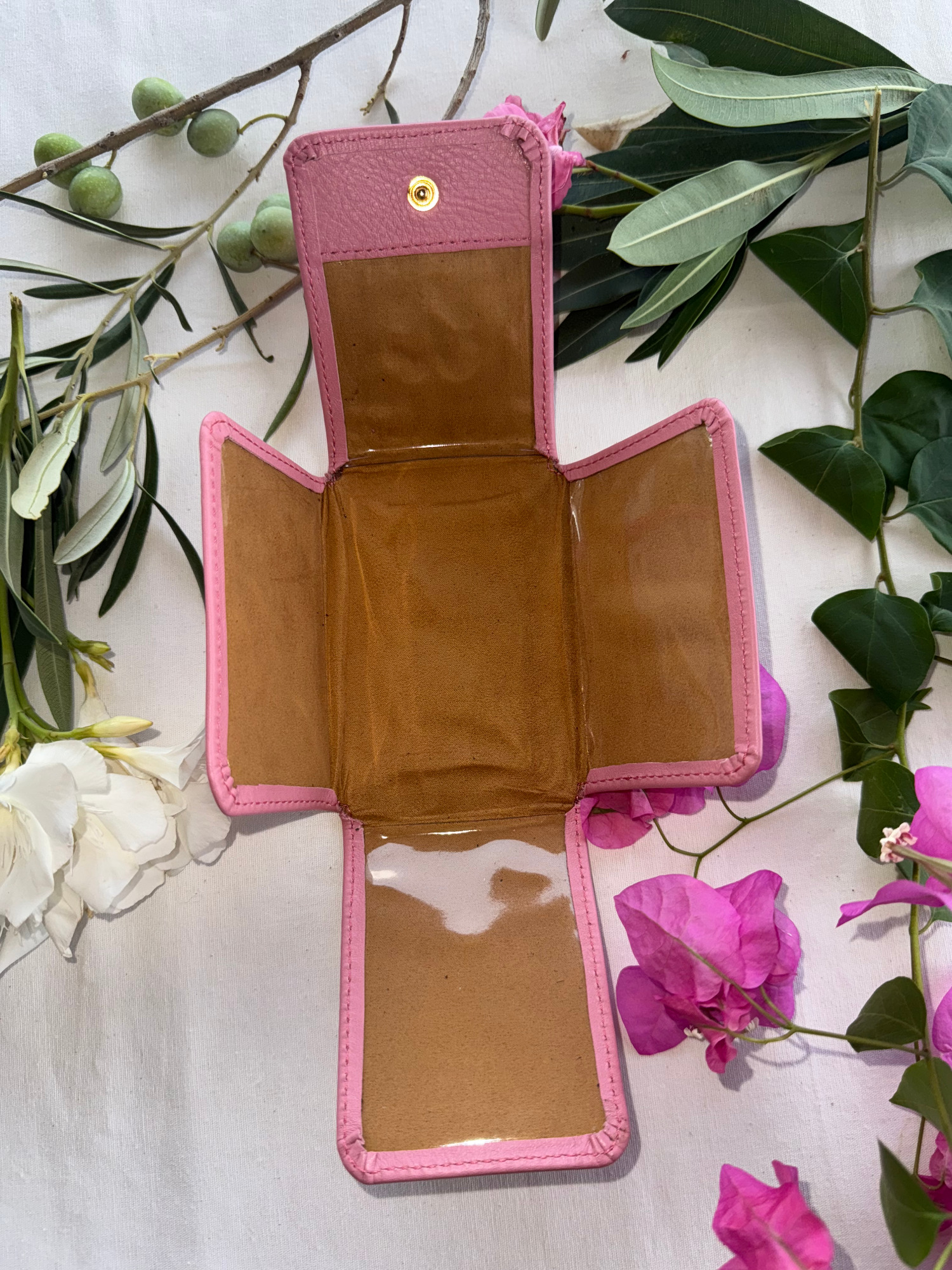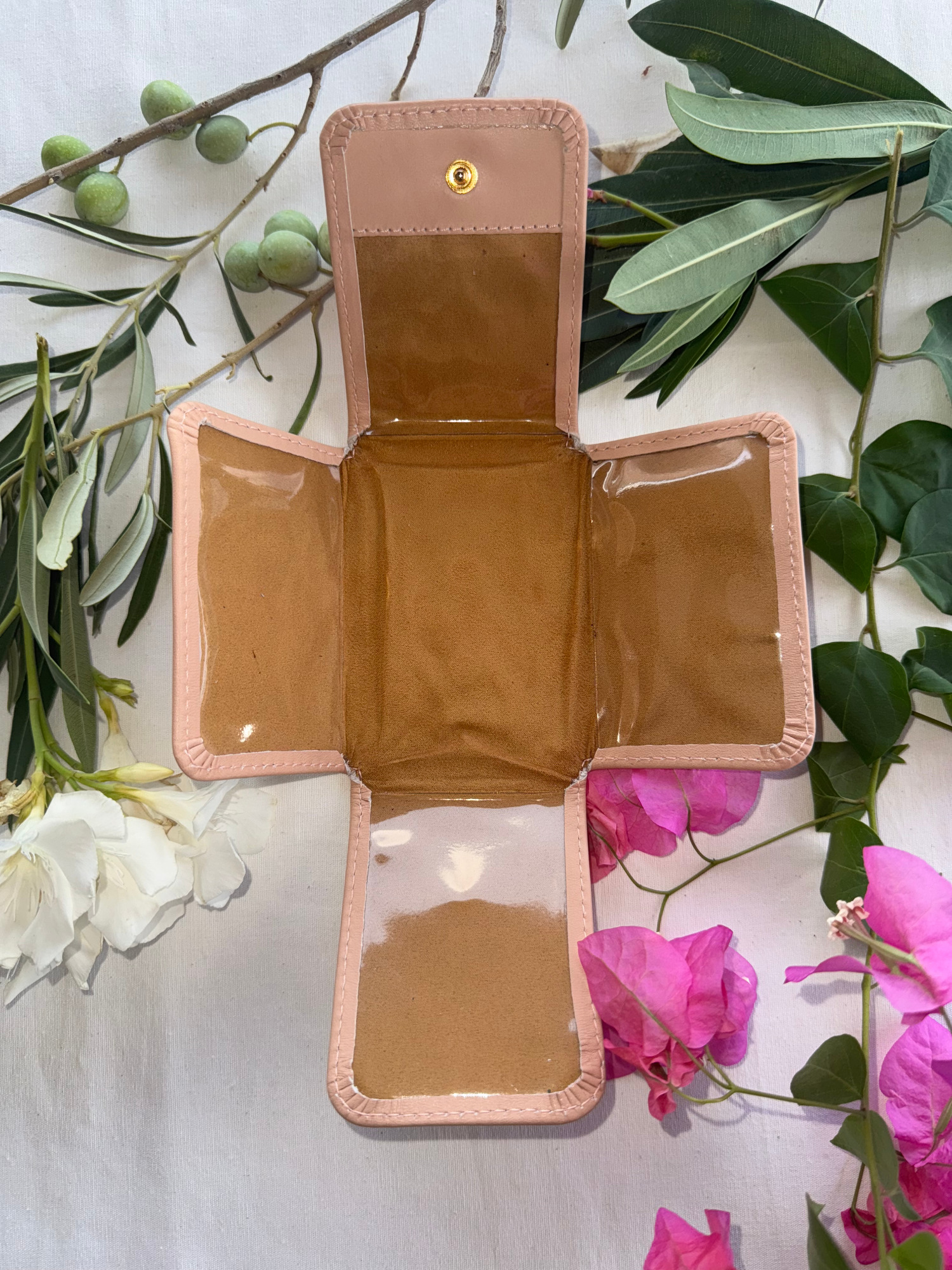 Pequeño y práctico, este oratorio te permite colocar estampas y fotografías tamaño DNI y, en el centro, colgar o coser cruces y medallas. En la parte trasera, incluye un portarosario que puede separarse si lo deseas. Cada detalle está pensado para acompañarte en momentos en los que vivir la fe con devoción, ya sea en casa, en la oficina o de viaje.